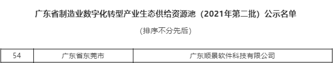 喜报 | 顺景软件入选广东省工业互联网产业生态供给资源池