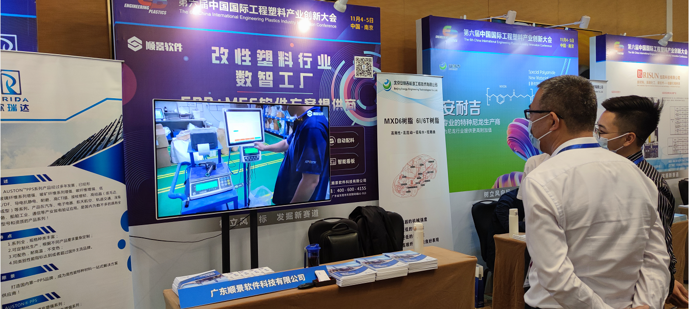 会议汇聚了来自政府协会领导,科研院所专家、学者、企业代表和媒体代表,展示出1大主题“树立风向标,发掘新赛道”,5大分论坛专场围绕工程塑料全产业链,聚焦"工程塑料在战略性新兴产业中的新型树脂、高性能助剂、改性加工及成型技术、创新应用开发"等主题。15+顶级专家,25+顶级企业,40余场干货报告,300余人共聚一堂,分享、交流合作,共享成果,共探未来!【顺景软件】作为赋能弹性体塑料行业数字化转型的科技企业,应邀参加了此次工程塑料行业大会。